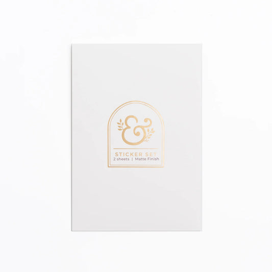 • Page of sophisticated alphabet stickers, white letters on a black background. This image shows two sheets of stickers.