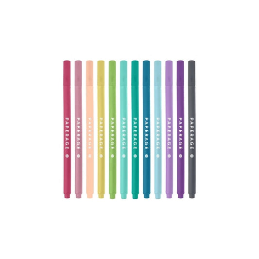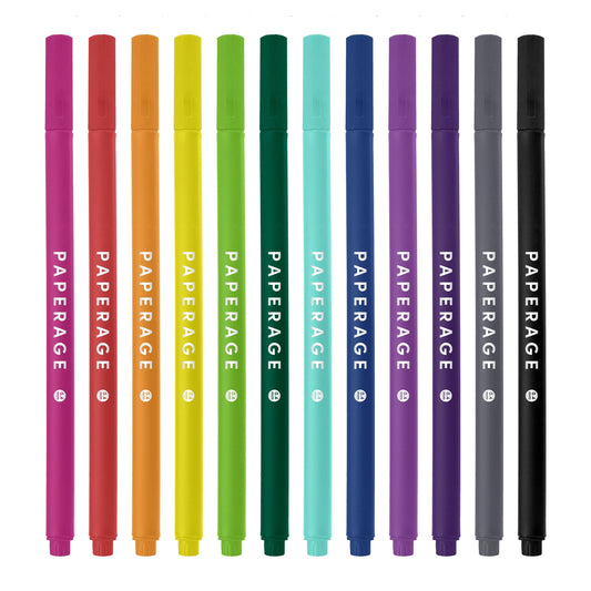 12 Pack Felt Tip Fine Line Pastel Marker Pens with Case