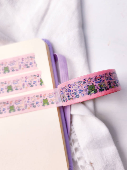 Frogs and Ducks Washi Tape Cottagecore Pink Pattern