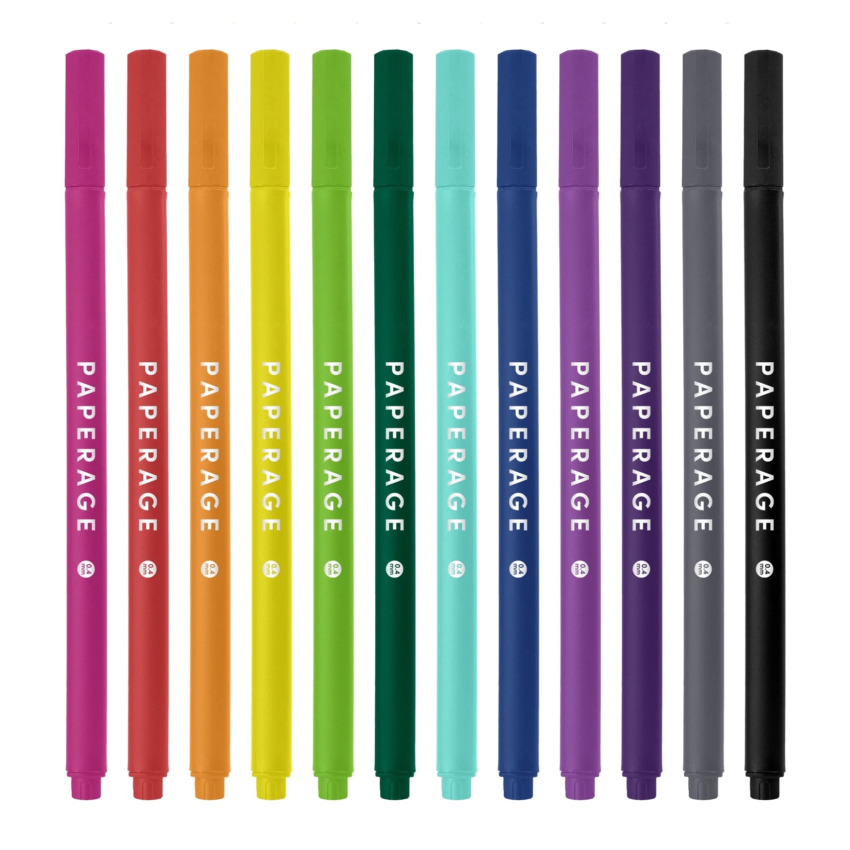 Bring color and precision to every page with this 12-piece Felt Tip Fine Line Marker Pen Set with case. Includes 12 fine point pens with 0.4mm felt tips, triangular ergonomic barrels, water-based ink, and a clear storage case. Perfect for students, artists and planners, they're great for Back to School, journaling, note-taking and creative projects.