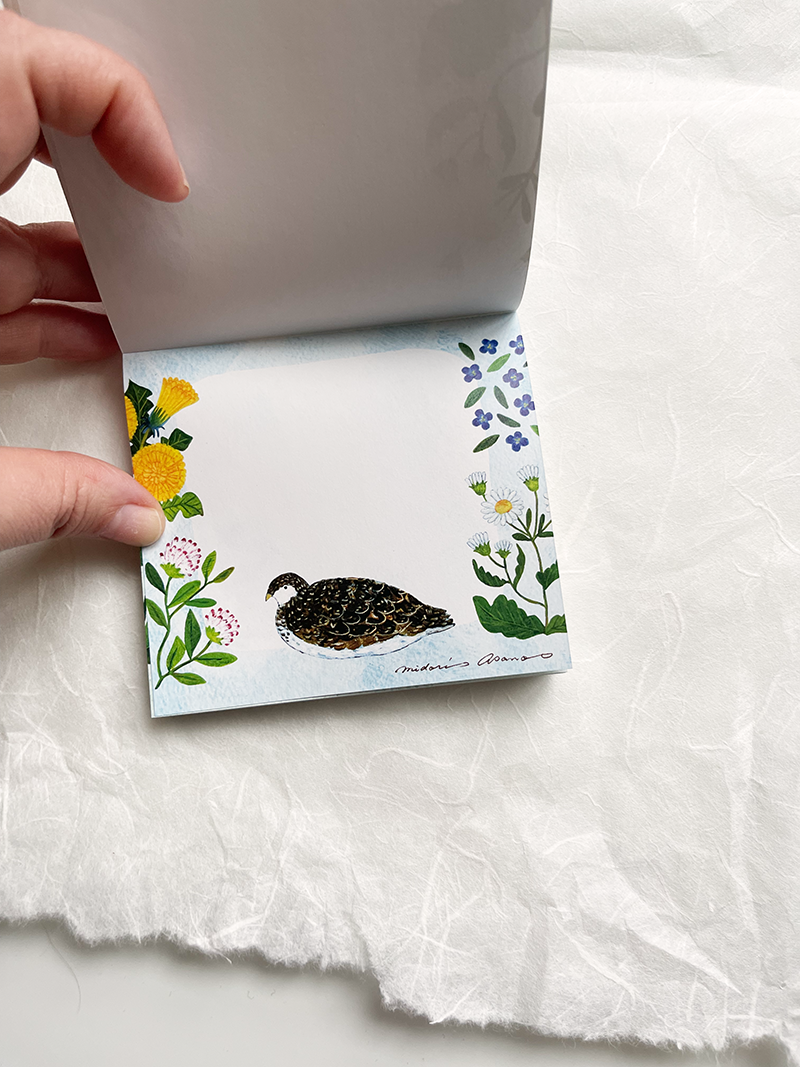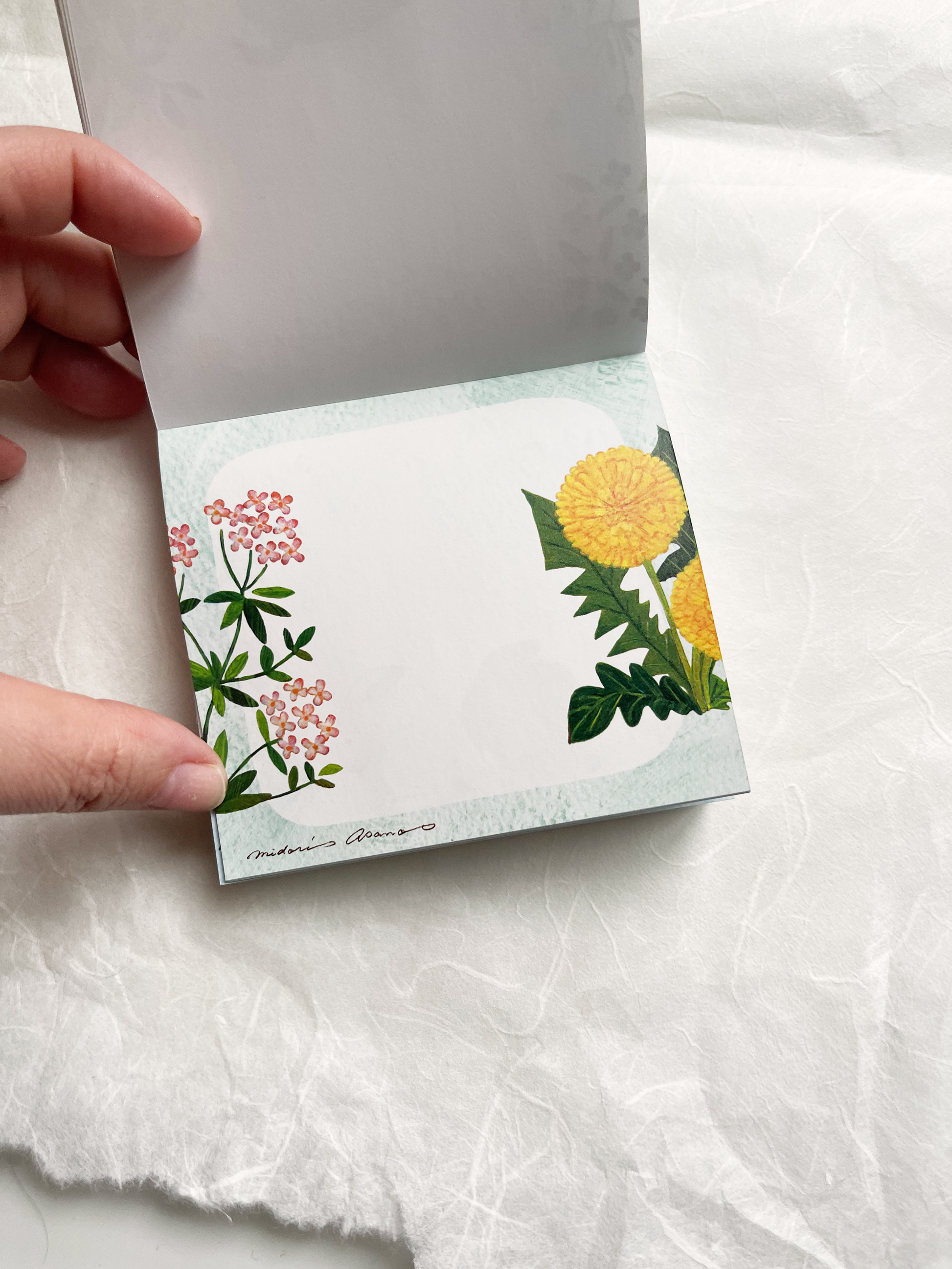 Block memo by illustrator Midori Asano. The carefully drawn fruits and flowers seem to smell good.