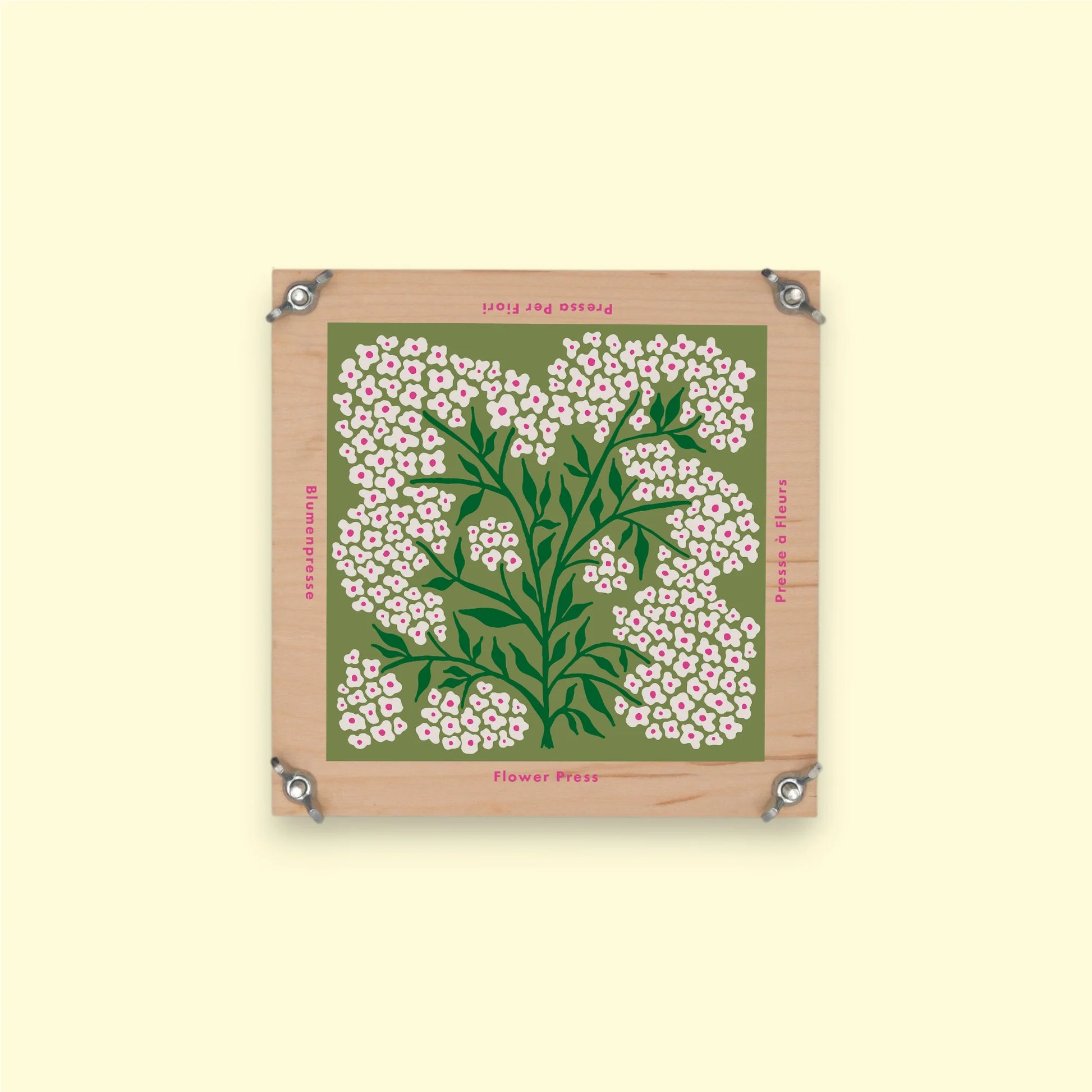 The illustration inspired by Forget Me Not flowers adds a charming touch, making it a lovely display piece while your pressings dry.