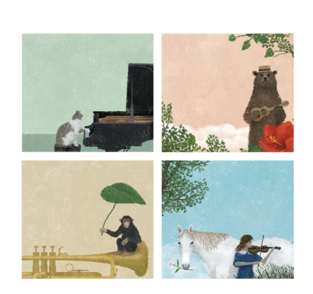 Block memo by illustrator/graphic designer* Akira Kusaka. The design depicts animals playing musical instruments.
