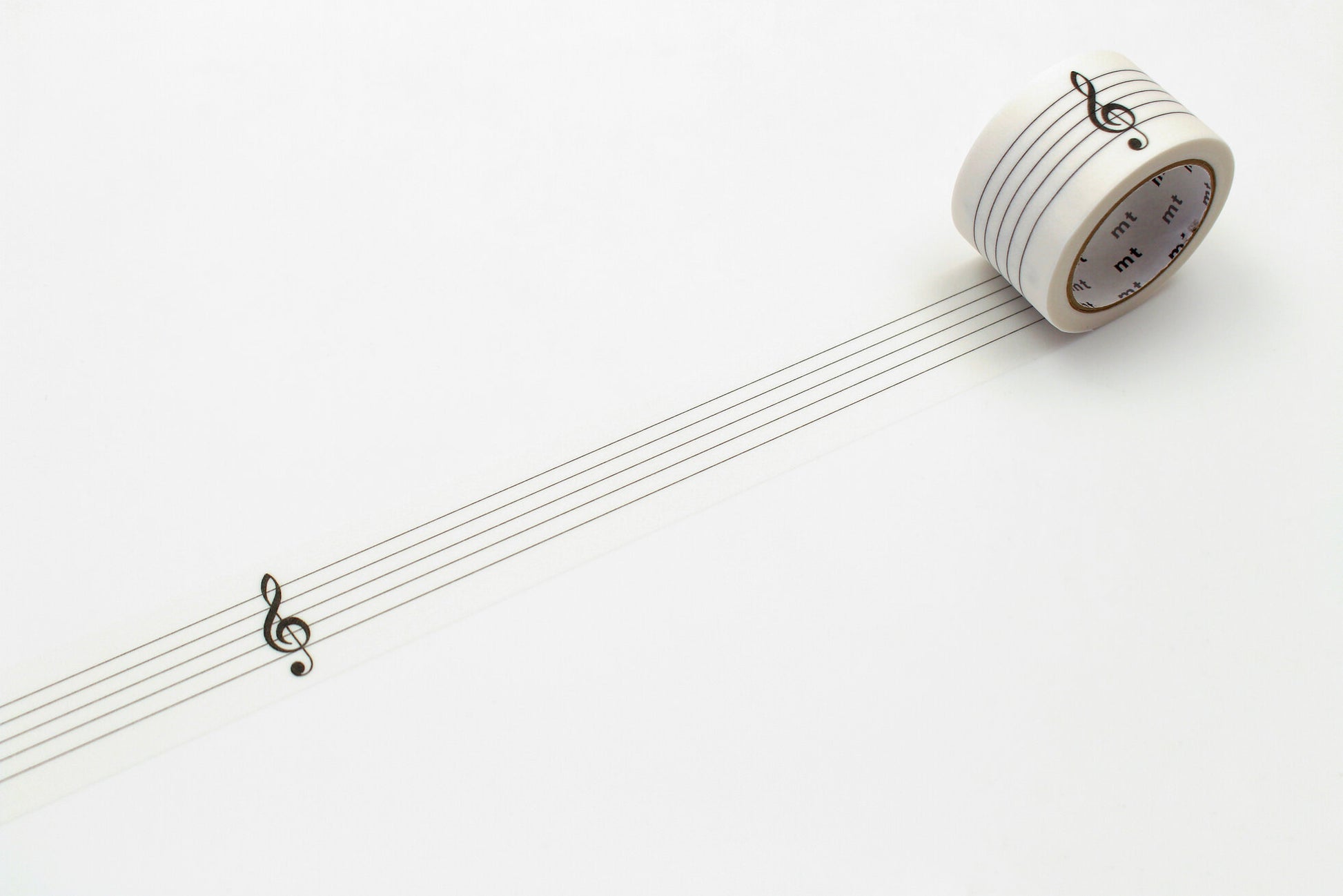 25mm Kaku-Kaku Musical Staff and Treble Clef washi tape features a writable surface with treble clef and lines.