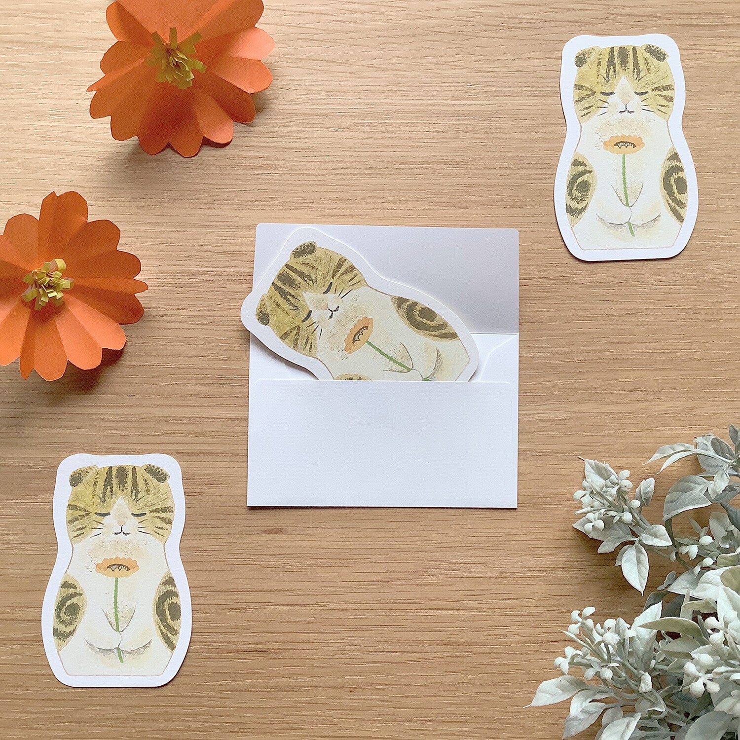 Material / component: Card Material:. Textured, slightly thicker paper. Cream color. Paper with excellent writing characteristics like drawing paper. Envelope material: Thin, drawing paper-like paper.