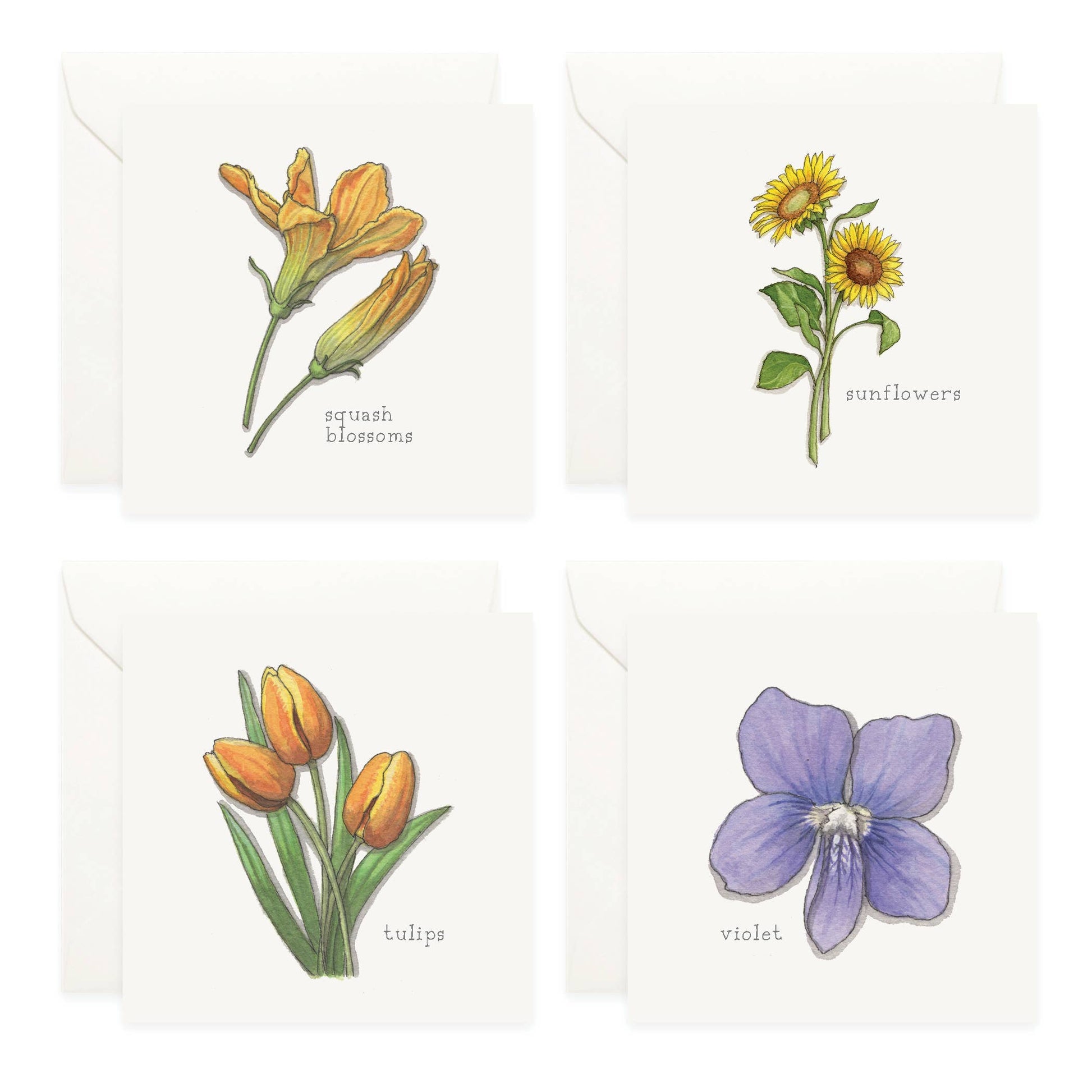 Twelve (12) 2-1/2" square mini cards + Twelve (12) 2-3/4" square mini envelopes in a 3"x3" square kraft box.