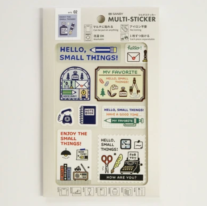 Sanby Multi-Stickers adhere smoothly to a wide range of surfaces, including fabric and leather. No ironing is necessary, though a quick press with an iron can strengthen the bond on textiles. They also hold up beautifully through dishwashing and machine washing. Not safe for microwaves, dryers, or dry cleaning. Received best award at the 2025 Tokyo Stationery Awards.