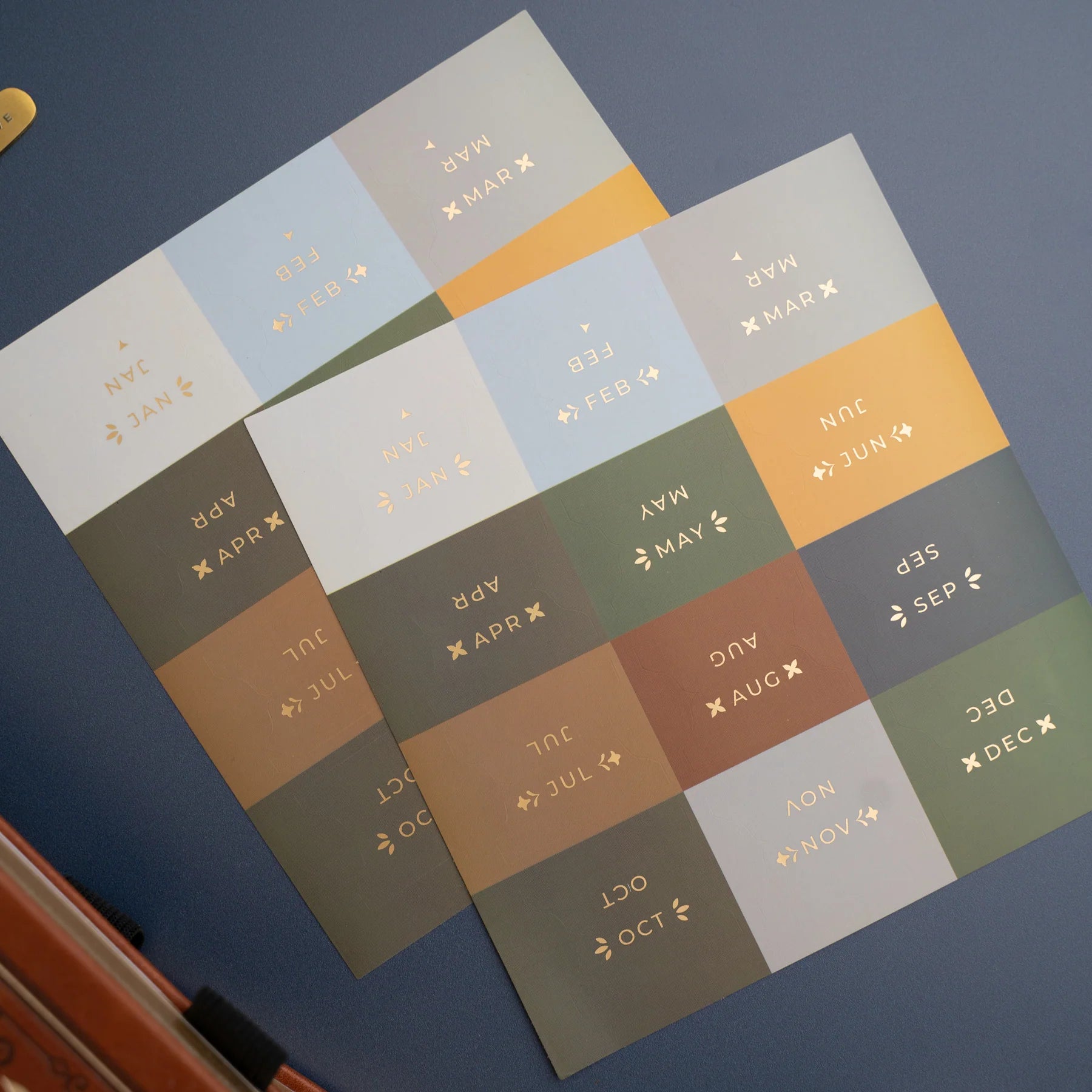 This set includes 2 sheets, both including 12 months of the year, designed to fold and stick to the corner of each monthly cover page in your planner. They are designed to enhance the overall aesthetics of your planner while serving as practical dividers to separate each month.