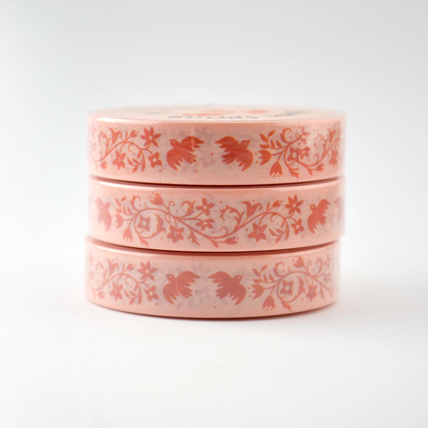 This narrow washi tape features a design of fanciful birds and flowering branches, inspired by the peaceful feeling of being in a shady wood in the springtime.