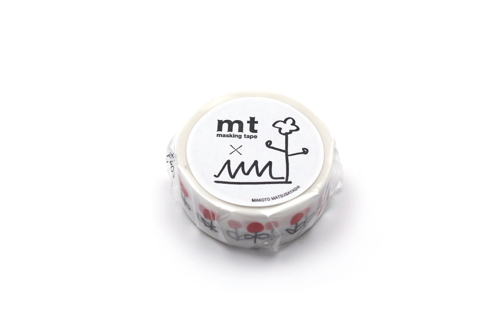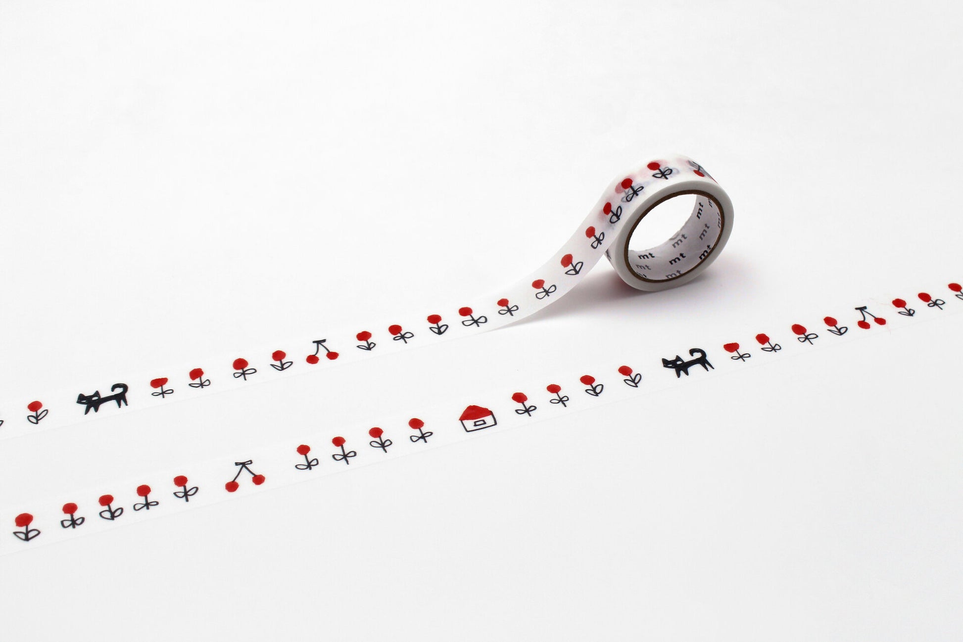 This washi tape by Makoto Matsubayashi features floral motifs in bright, cheerful colors interspersed with houses and black cats. Brighten any journal, planner, or creative project. Crafted in Japan with high-quality washi paper, it tears by hand smoothly, sticks effortlessly, and removes cleanly without residue. Whether you’re marking pages, decorating envelopes, or adding a seasonal touch to your stationery, this washi tape brings elegance and floral charm to every detail.