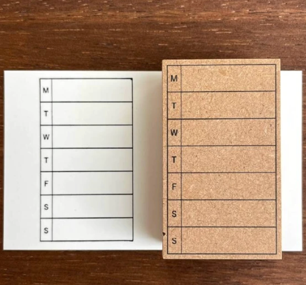 This stamp can be used to write notes for the week. You can freely enter the amount of money you spent on that day, your weight, body temperature, temperature, study time, etc. The basic design of this notebook stamp fits in well with a variety of notebooks. You can easily record your daily record by stamping it on your notebook or notebook. It is also recommended for making a valet journal.